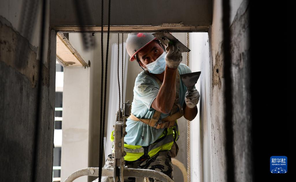 9月2日,工人在??诮瓥|新區東寨新居一期項目施工現場(chǎng)作業(yè)。