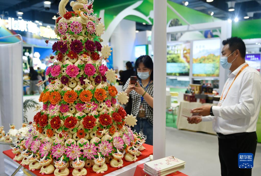9月2日,在服貿會(huì )國家會(huì )議中心二期展館內,參觀(guān)者在拍攝展出的霍州花饃。新華社記者 魯鵬 攝