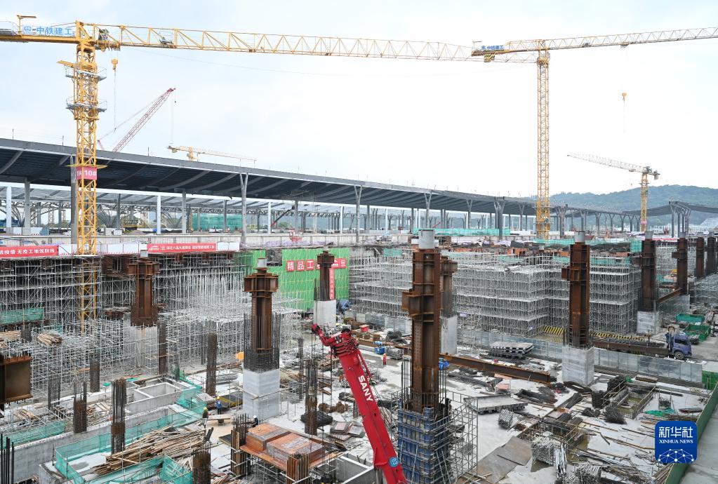新建福廈鐵路福州南站施工現場(chǎng)(9月1日攝)。