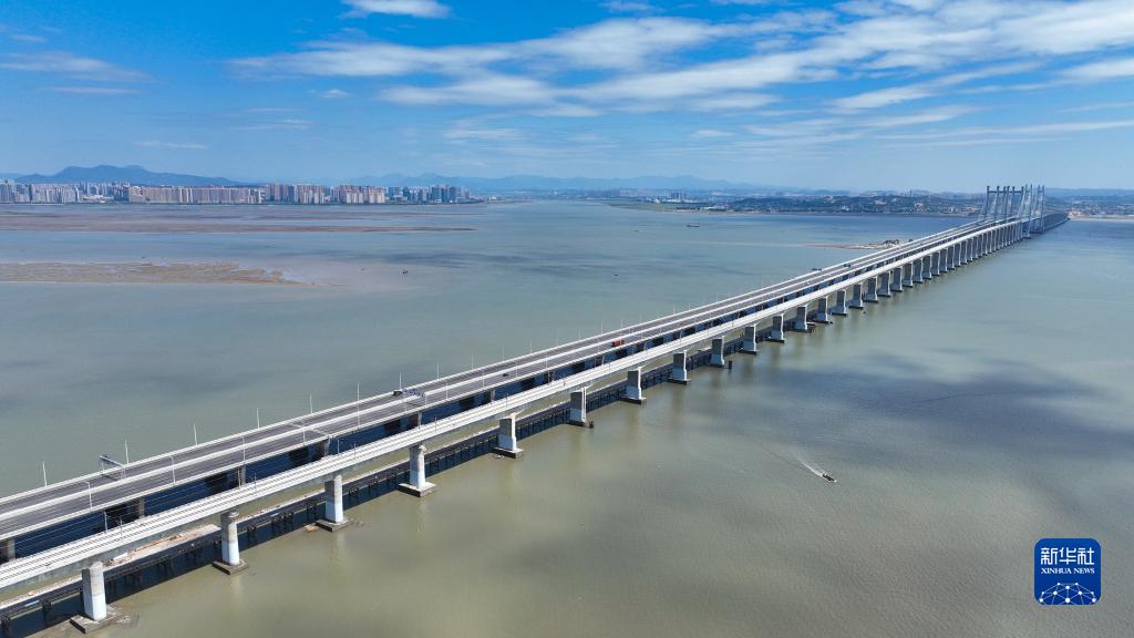 這是9月2日拍攝的新建福廈鐵路泉州灣跨海大橋(無(wú)人機照片)。