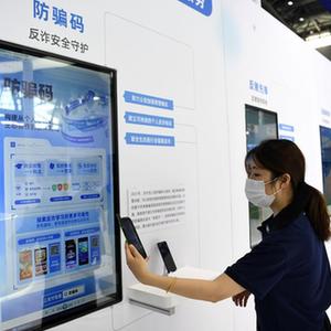 9月4日,一家參展企業(yè)代表在演示使用防騙碼。