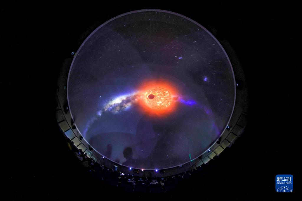 2022年7月20日,參觀(guān)者在天文體驗館內觀(guān)看天文科普電影。