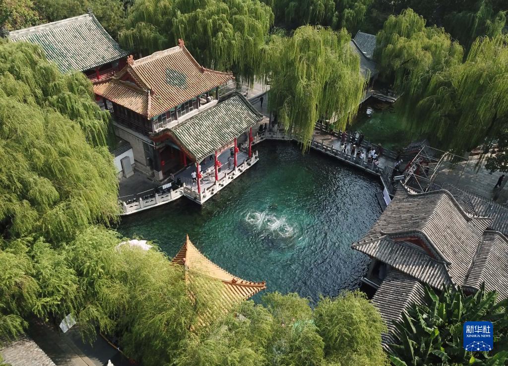 9月6日,濟南趵突泉泉水噴涌(無(wú)人機照片)。