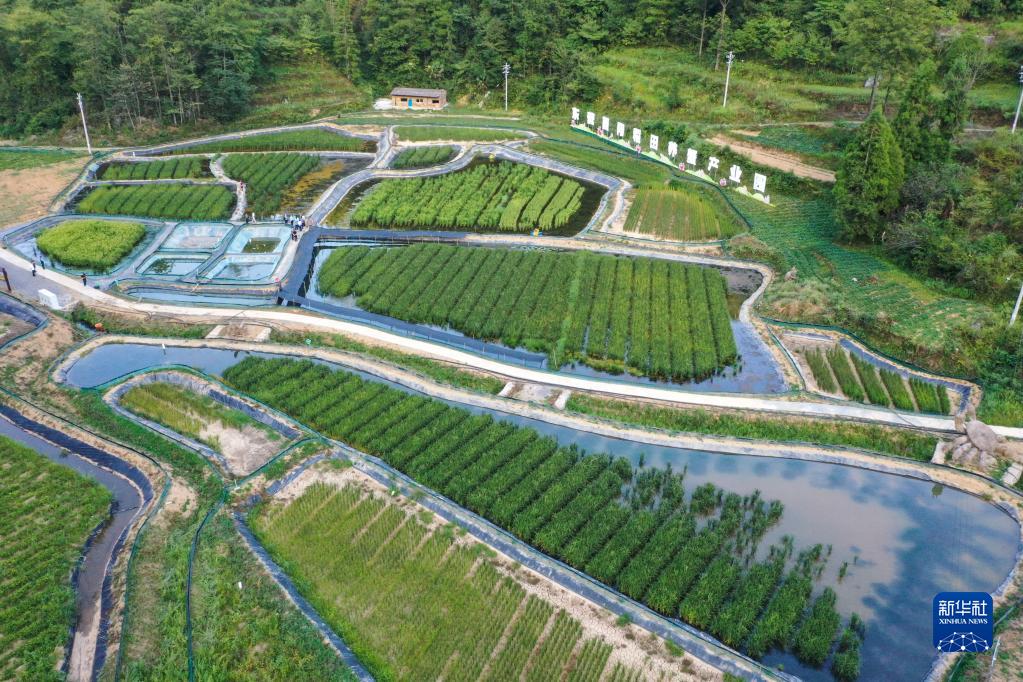 這是9月6日拍攝的重慶市酉陽(yáng)縣黑水鎮大涵村“稻田養蟹產(chǎn)業(yè)園”(無(wú)人機照片)。新華社記者 唐奕 攝