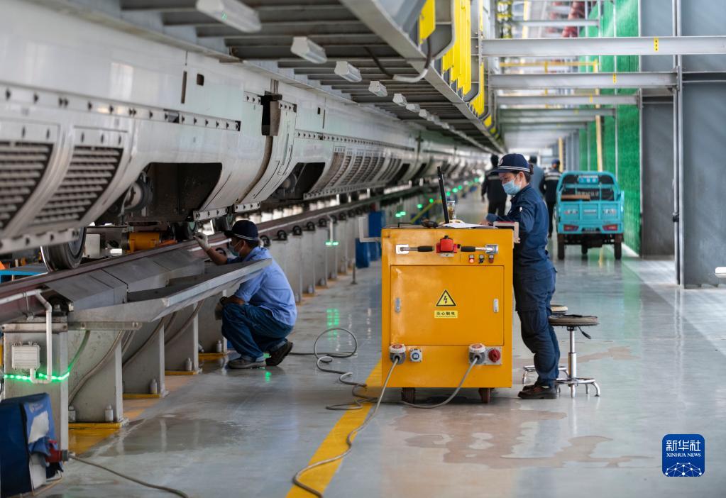 9月7日,工作人員在昆明動(dòng)車(chē)所內對一列動(dòng)車(chē)組列車(chē)進(jìn)行檢測。