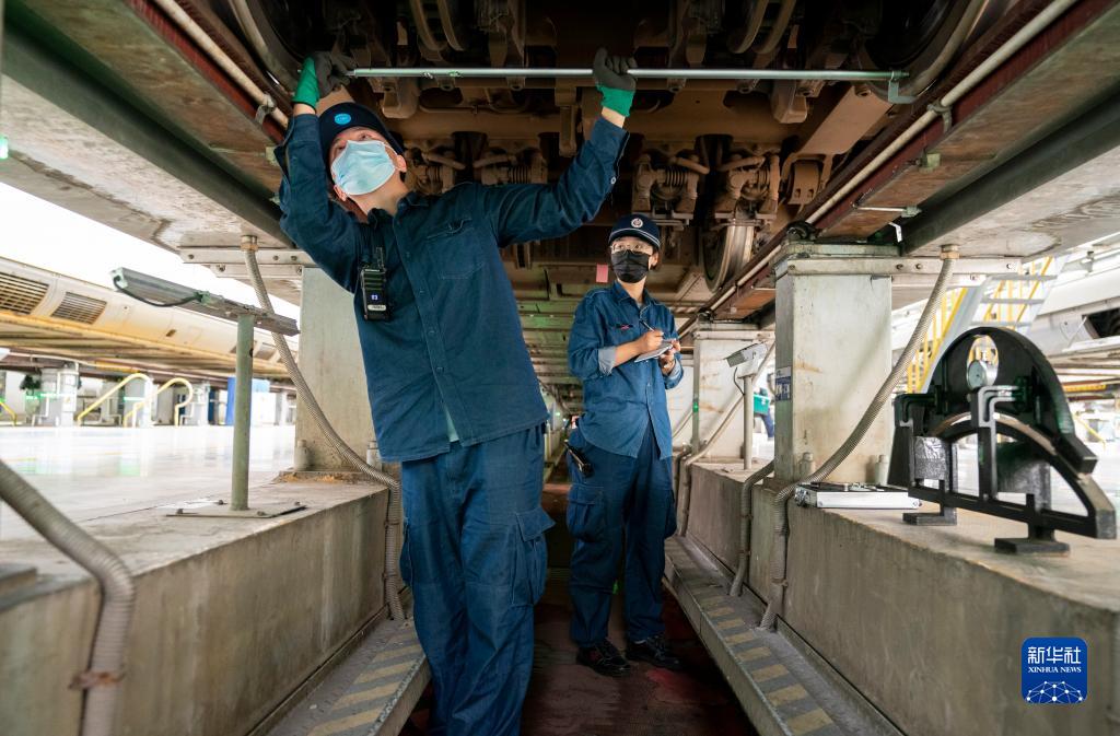 為保證今年中秋、國慶假期高鐵動(dòng)車(chē)健康上線(xiàn)運行,滿(mǎn)足旅客出行需求,昆明車(chē)輛段昆明動(dòng)車(chē)所提前安排生產(chǎn)計劃,加強關(guān)鍵項點(diǎn)安全風(fēng)險防控,對配屬動(dòng)車(chē)組制動(dòng)裝置、走行部、客服設施等關(guān)鍵部位進(jìn)行全面保養檢修,近期平均每天檢修動(dòng)車(chē)組30組。