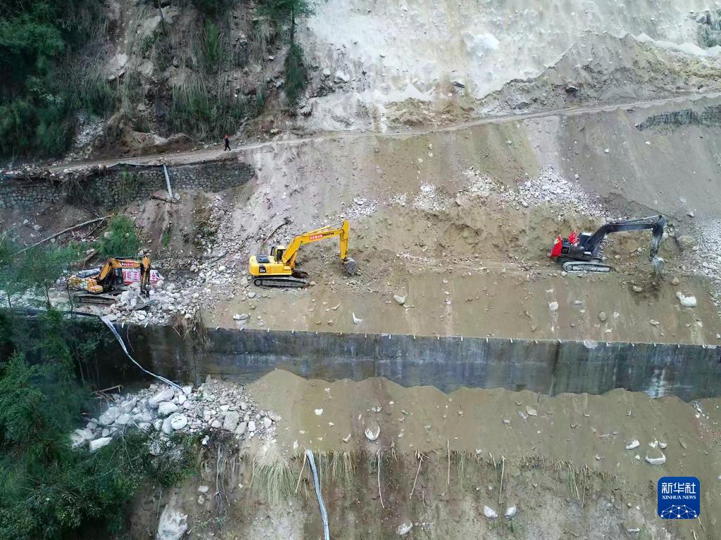 9月7日,在四川省甘孜州瀘定縣磨西鎮附近,四川路橋的工作人員在搶修通往海螺溝景區的道路。