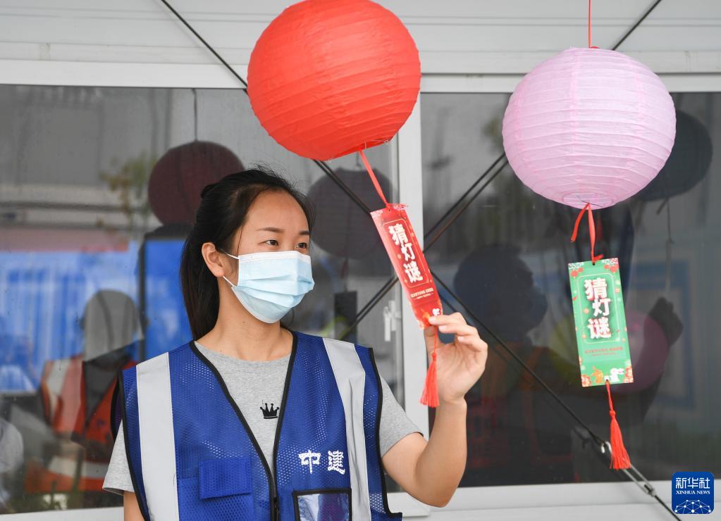 9月7日,工友在中建二局招商西永項目部參與猜燈謎活動(dòng)。