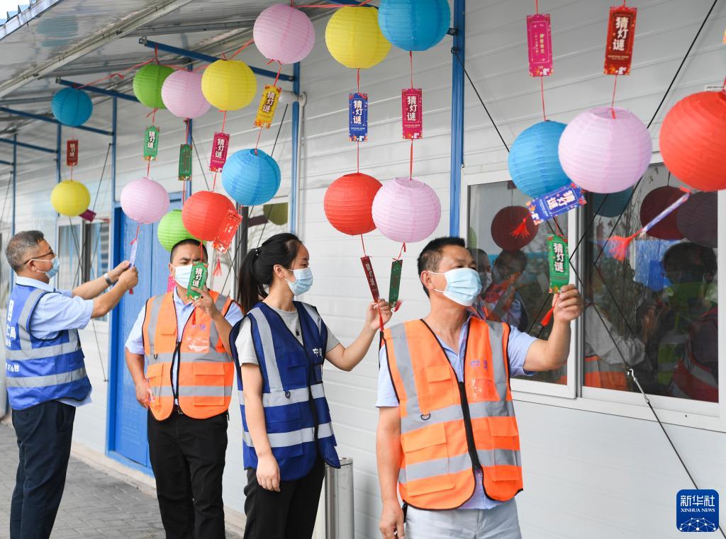 9月7日,工友在中建二局招商西永項目部參與猜燈謎活動(dòng)。