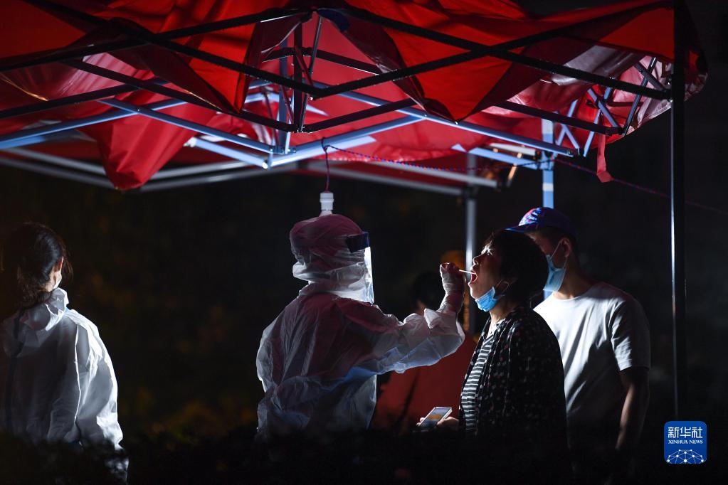 9月3日晚,醫護人員在貴陽(yáng)市云巖區大營(yíng)路街道中天花園社區給市民做核酸檢測。