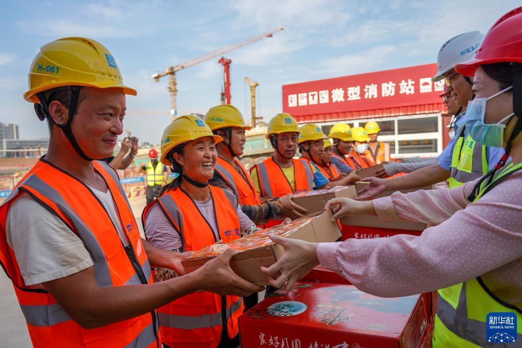 9月8日,在濟南浪潮智能計算產(chǎn)業(yè)園建設項目現場(chǎng),參與項目的建設者在領(lǐng)取月餅。