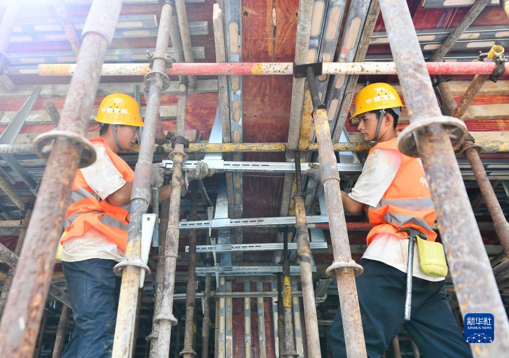 9月9日,張志軍的大兒子張勁松(左)與小兒子張虎在施工現場(chǎng)工作。