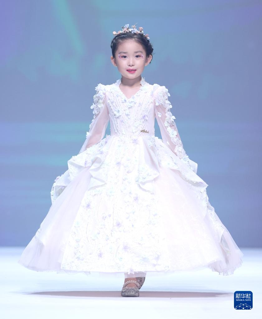9月9日,小模特在北京中國國際時(shí)裝周(2023春夏系列)舉行的“AMORCODE”童裝發(fā)布會(huì )上展示童裝。