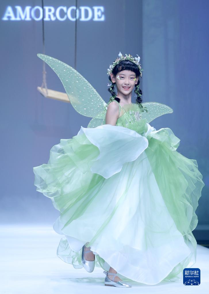 9月9日,小模特在北京中國國際時(shí)裝周(2023春夏系列)舉行的“AMORCODE”童裝發(fā)布會(huì )上展示童裝。