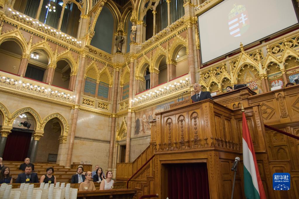 9月8日,在匈牙利布達佩斯國會(huì )大廈,匈牙利國會(huì )副主席洛托爾曹伊·亞諾什(中)在頒獎典禮上致辭。