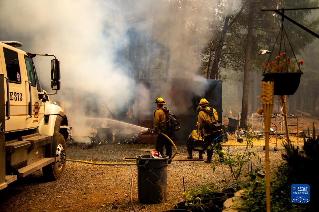 9月9日,消防員在美國加利福尼亞州北部塔霍湖附近的森林滅火。