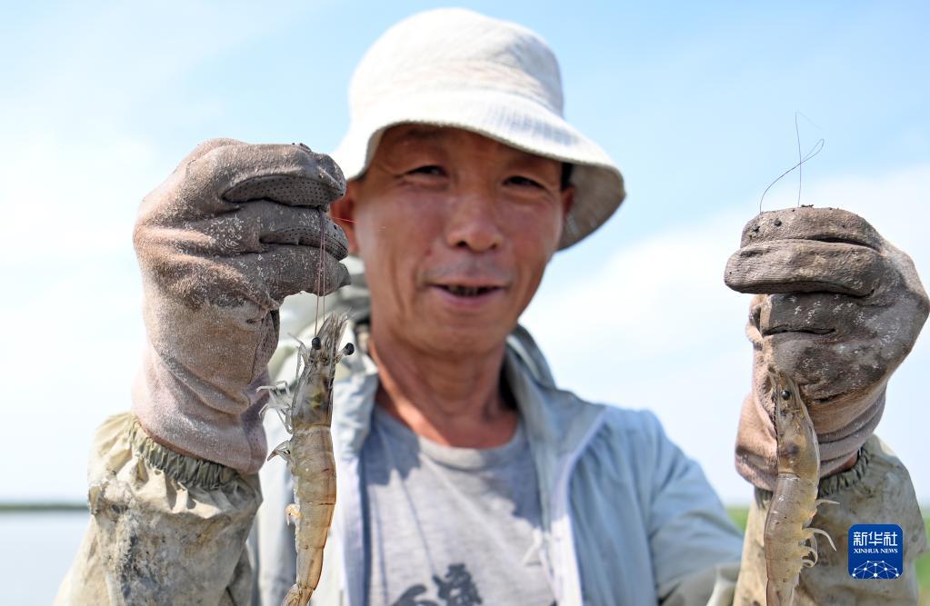 近日,位于天津濱海新區北塘街的約萬(wàn)畝蝦塘迎來(lái)豐收季,村民們在蝦塘圍網(wǎng)、捕獲、裝車(chē),將收貨的鮮蝦供應市場(chǎng)。