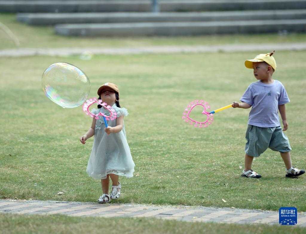 9月10日,小朋友們在安徽省合肥市綠軸公園玩耍。