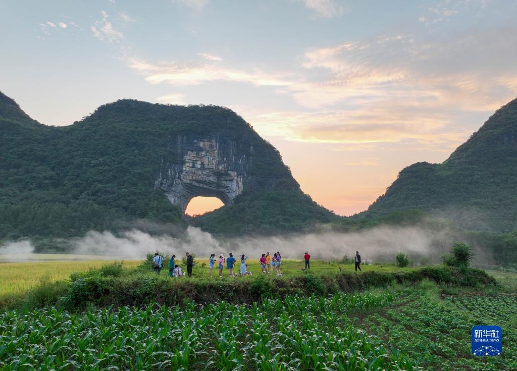 9月10日,游客在湖南省永州市道縣月巖風(fēng)景區拍照游玩(無(wú)人機照片)。