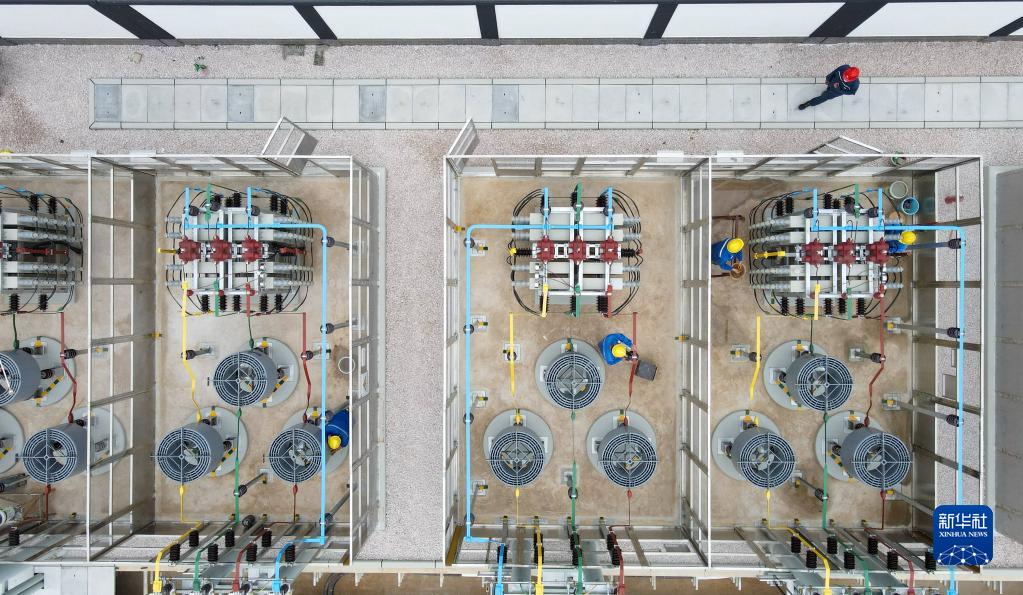 9月10日,工人在位于貴州臺江經(jīng)濟開(kāi)發(fā)區的220千伏苗江變電站內清潔待投運設備上的灰塵(無(wú)人機照片)。