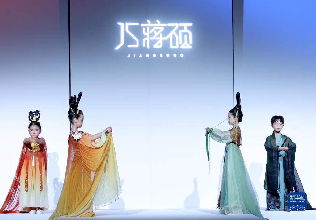 9月11日,模特在在北京中國國際時(shí)裝周(2023春夏系列)舉行的“JS·蔣碩”童裝發(fā)布會(huì )上展示設計師蔣碩設計的童裝。