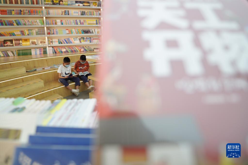 9月11日,小朋友在河北省邢臺市內丘縣新華書(shū)店閱讀圖書(shū)。