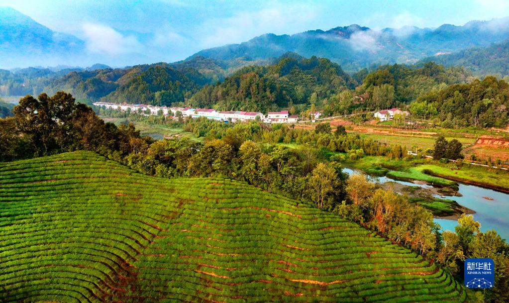 秋意漸濃,在陜西省漢中市西鄉縣的山坡上、田野里,茶樹(shù)層層疊疊、錯落有致地排列著(zhù)。茶園一行行、一排排,遠遠望去,滿(mǎn)眼青翠,如詩(shī)如畫(huà)。