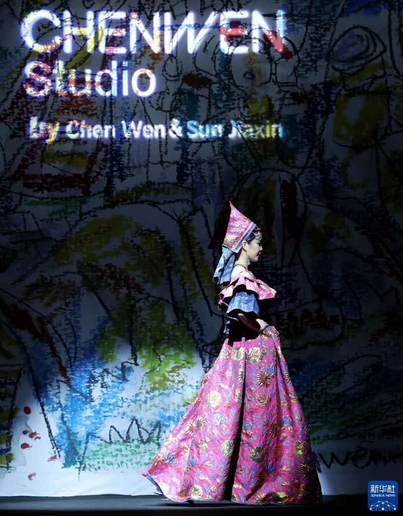 9月12日,模特在北京中國國際時(shí)裝周(2023春夏系列)舉行的“CHENWEN Studio·陳聞”牛仔親子裝發(fā)布會(huì )上展示時(shí)裝設計師陳聞設計的牛仔親子裝。