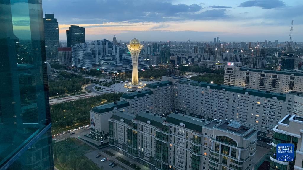 這是9月10日在哈薩克斯坦努爾蘇丹拍攝的巴伊杰列克觀(guān)景塔和周邊建筑。
