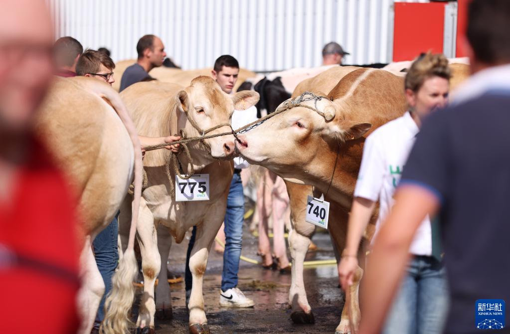 9月13日,在法國雷恩畜牧業(yè)展覽會(huì )上,參展商牽牛去參加比賽。