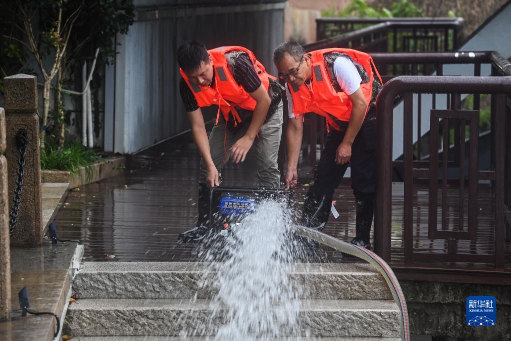 9月14日,浙江嘉興市南湖區建設街道丁家橋社區為應對臺風(fēng)“梅花”,成立應急小分隊,提前準備好相應物資,在環(huán)城河邊對新增添的皮劃艇和抽水泵等應急設備進(jìn)行檢查、演練。