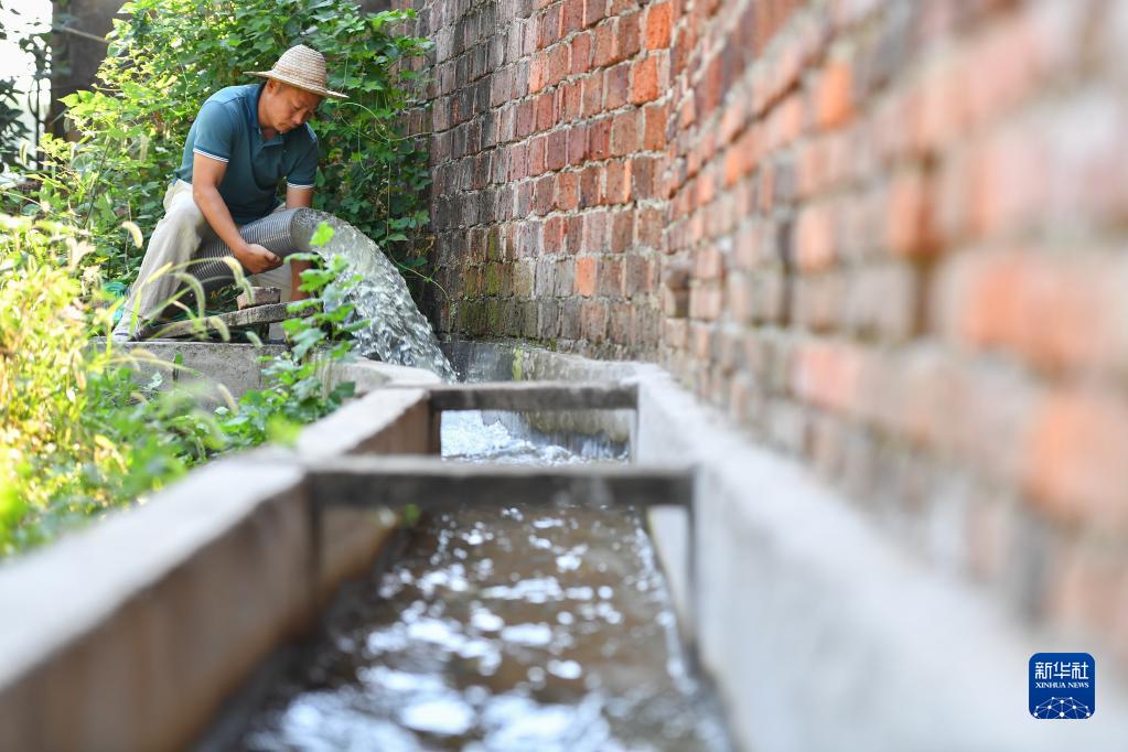 9月15日,在湘潭市雨湖區姜畬鎮泉塘子村,村民在調整抽水管位置。