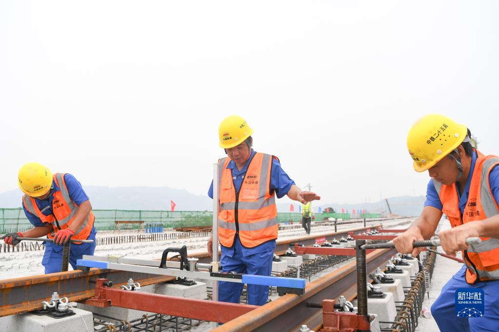 9月15日,施工人員在重慶軌道交通18號線(xiàn)軌道工程一標段作業(yè)。