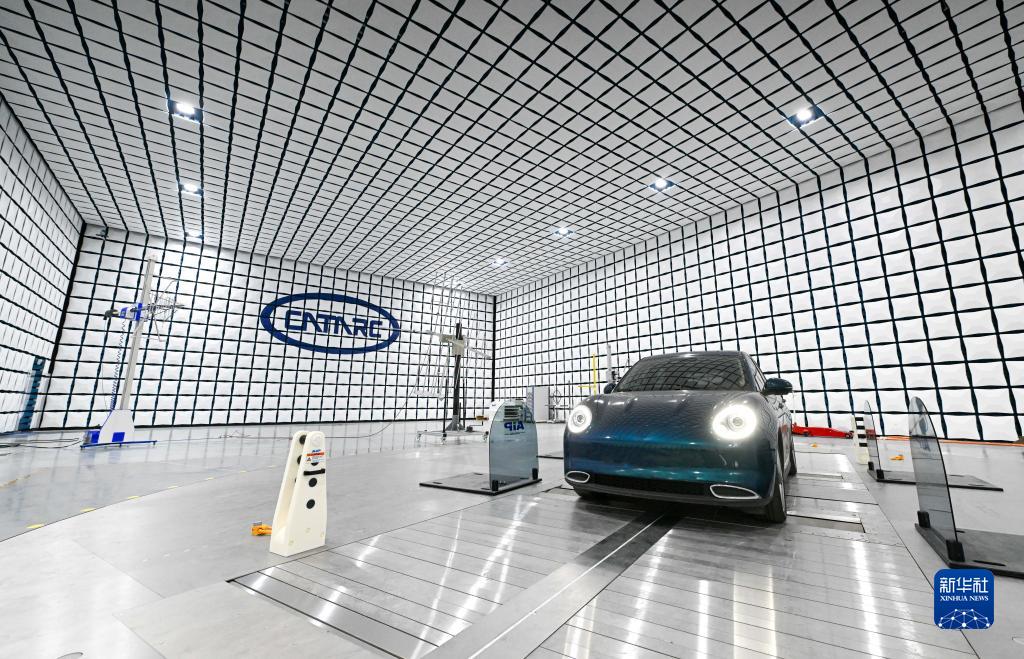 9月14日,在中汽中心新能源汽車(chē)科技創(chuàng )新基地電磁兼容部,新能源乘用車(chē)在接受電磁輻射水平測試。