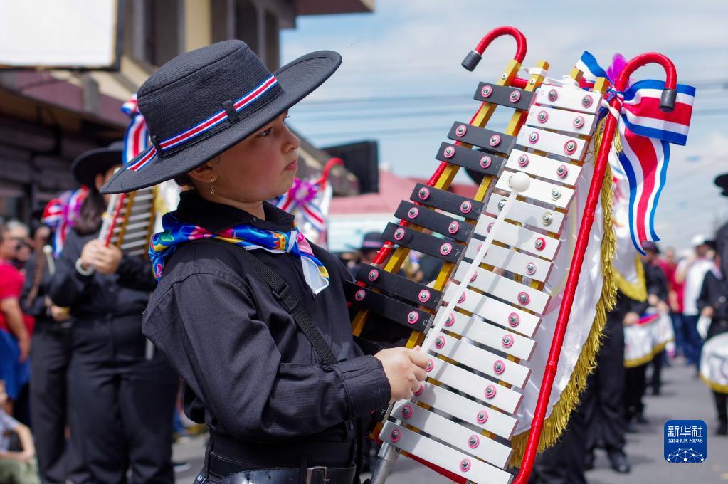 9月15日,在哥斯達黎加埃雷迪亞,民眾走上街頭歡慶該國獨立201周年。
