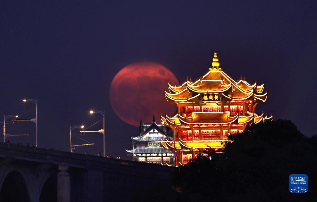 農歷八月十五中秋節,一輪圓月從湖北武漢黃鶴樓后升起(9月10日攝)。
