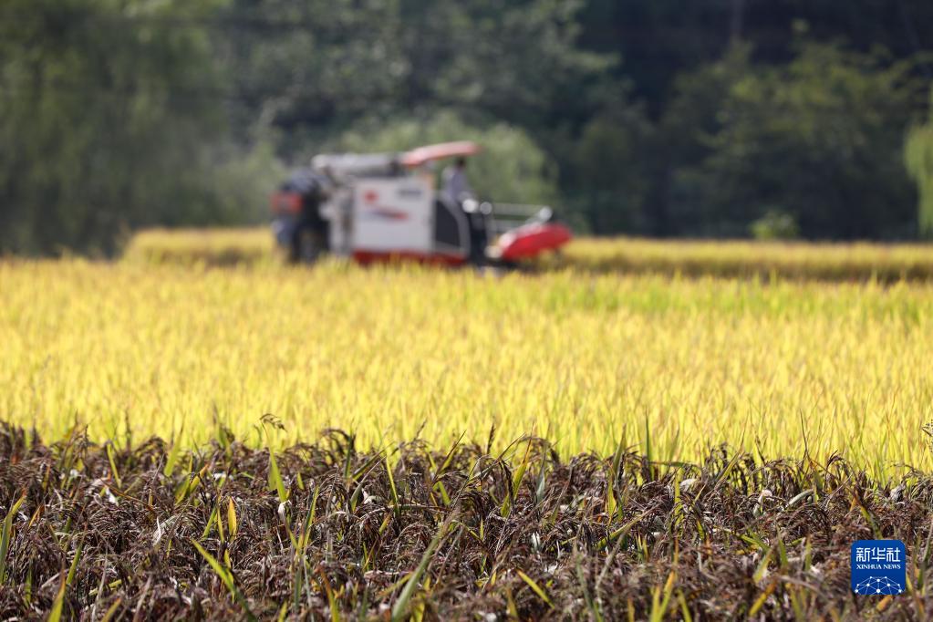 9月17日,村民在貴州省貴陽(yáng)市開(kāi)陽(yáng)縣禾豐鄉馬頭村收割水稻。