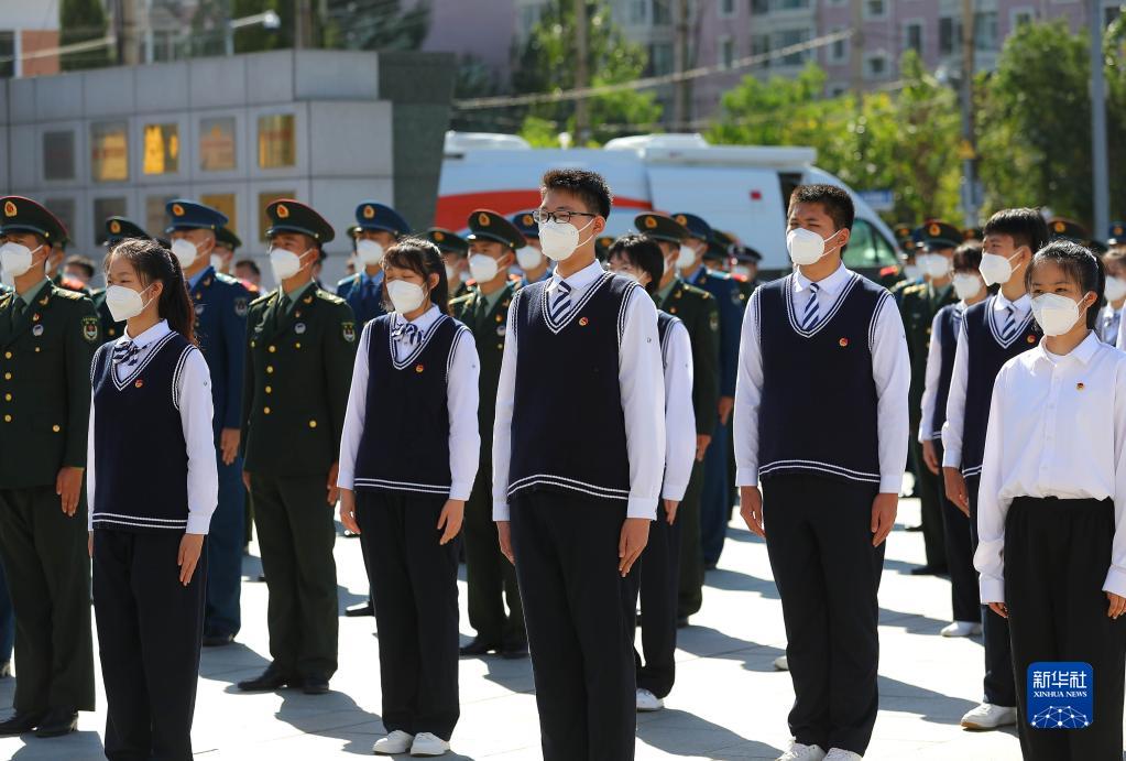 9月18日,青年學(xué)生參加勿忘九一八撞鐘鳴警儀式。