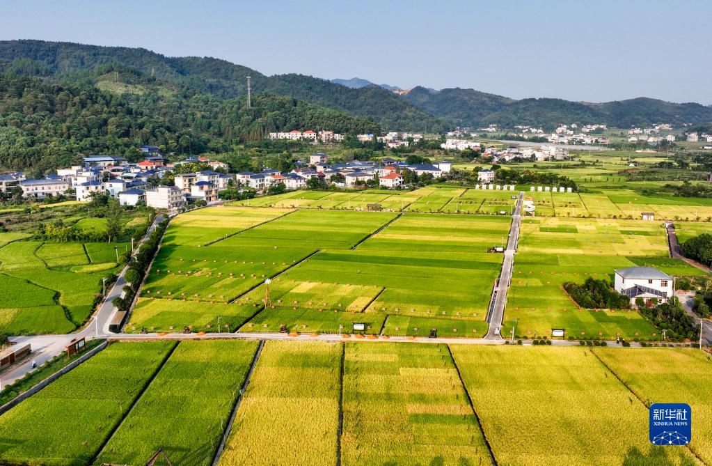 9月12日在江西省萍鄉市湘東區麻山鎮汶泉村拍攝的水稻制種基地(無(wú)人機照片)。