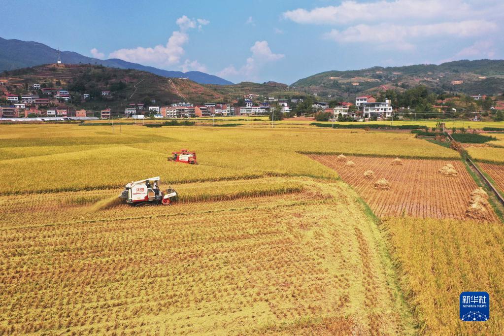 秋收時(shí)節,各地水稻陸續成熟,農民忙著(zhù)開(kāi)鐮收割,田間地頭稻谷飄香,一派喜人的豐收景象。