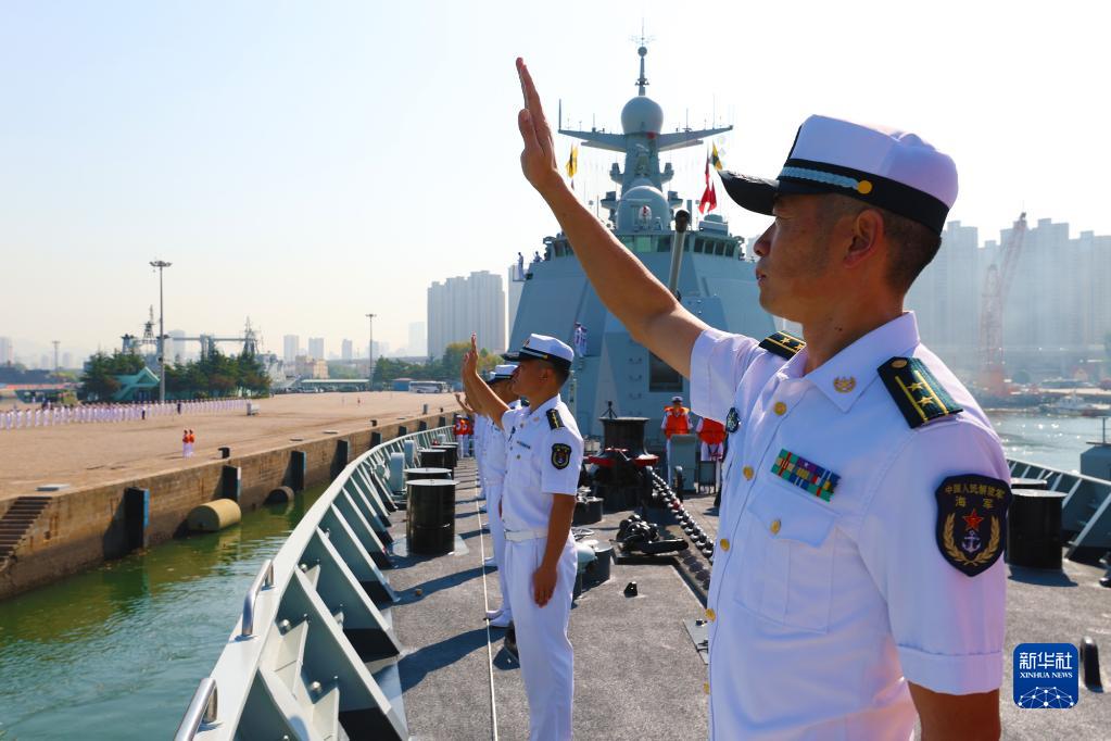 9月21日,中國海軍第42批護航編隊從山東青島某軍港解纜起航。這是官兵們在揮手告別。