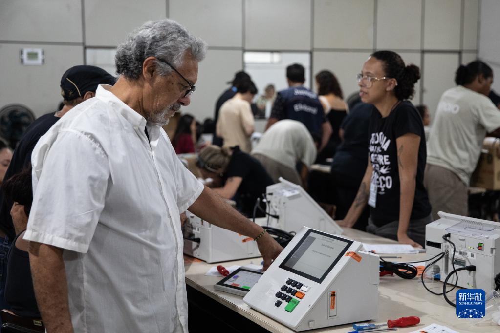 9月21日,在巴西里約熱內盧,工作人員參與大選電子投票箱的密封工作。