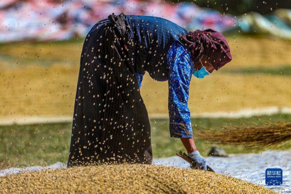 9月21日,拉薩市林周縣江熱夏鄉江夏村的村民在揚場(chǎng)。