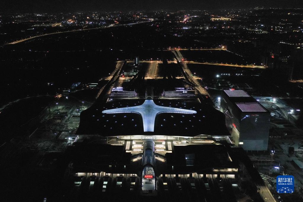 9月19日拍攝的杭州西站夜景(無(wú)人機照片)。