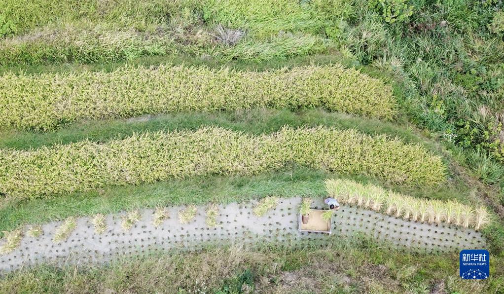 金秋時(shí)節,湖南省婁底市新化縣紫鵲界梯田的水稻進(jìn)入成熟收割期。紫鵲界梯田是世界灌溉工程遺產(chǎn)和全國首批19個(gè)重要農業(yè)文化遺產(chǎn)之一,梯田層層疊疊連綿起伏。