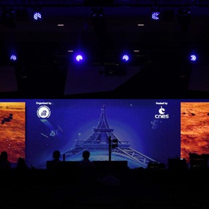 第73屆國際宇航大會(huì )18日至22日在法國巴黎舉行。國際宇航聯(lián)合會(huì )21日專(zhuān)門(mén)為獲得該組織年度最高獎、2022年度“世界航天獎”的中國天問(wèn)一號火星探測團隊舉辦成果介紹會(huì )。新華社記者高靜攝