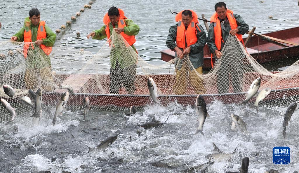 9月21日,在四川省南充市南部縣升鐘湖,漁民撒網(wǎng)捕魚(yú)。