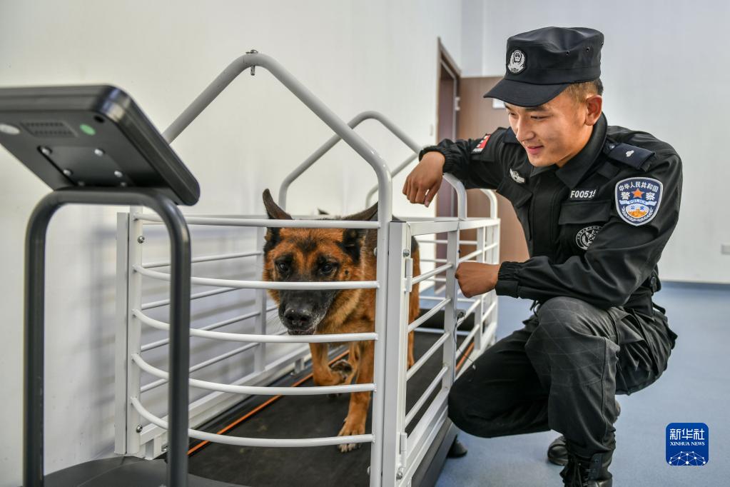 9月20日,訓導員馮如真帶領(lǐng)追蹤犬“阿里”訓練體能。