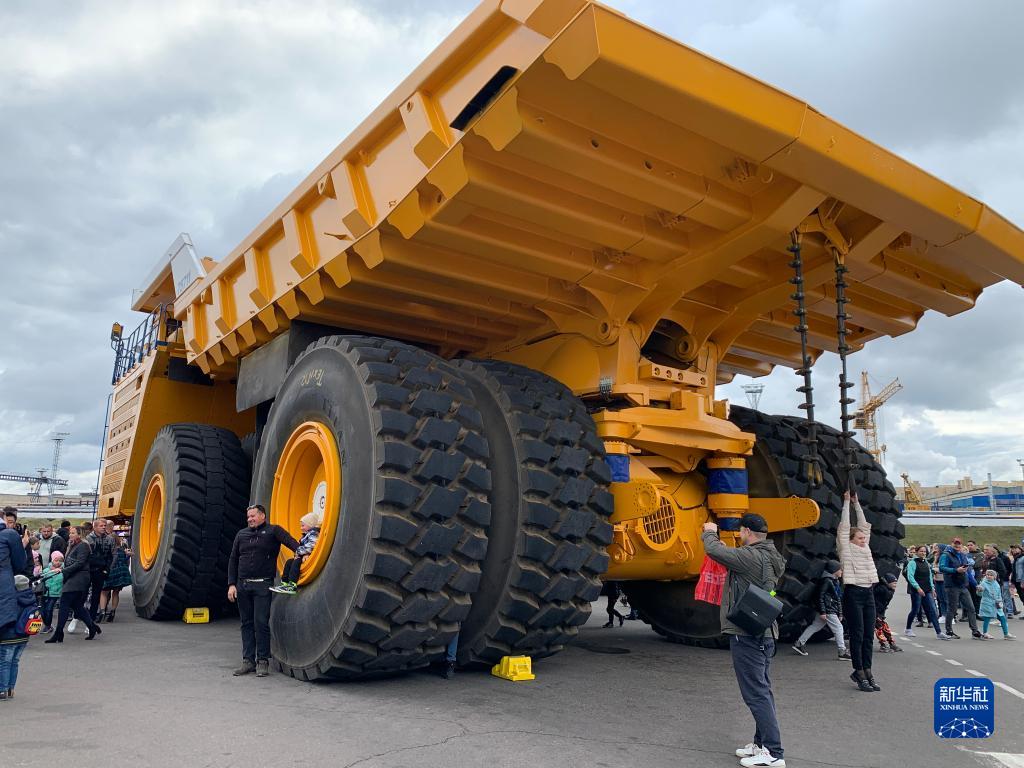 9月24日,市民在白俄羅斯明斯克州若基諾市的白俄羅斯汽車(chē)制造廠(chǎng)參觀(guān)Belaz75711大型自卸車(chē)。