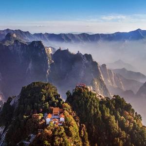 9月25日,夕陽(yáng)西下,雨后初霽的西岳華山,云霧縈繞,宛如仙境(無(wú)人機照片)。